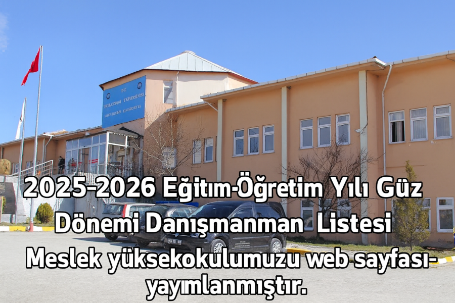 2025-2026 Eğitim-Öğretim Yılı Güz Dönemi Danışman Öğretim Görevlisi / Öğretim Üyesi Listesi için tıklayınız.