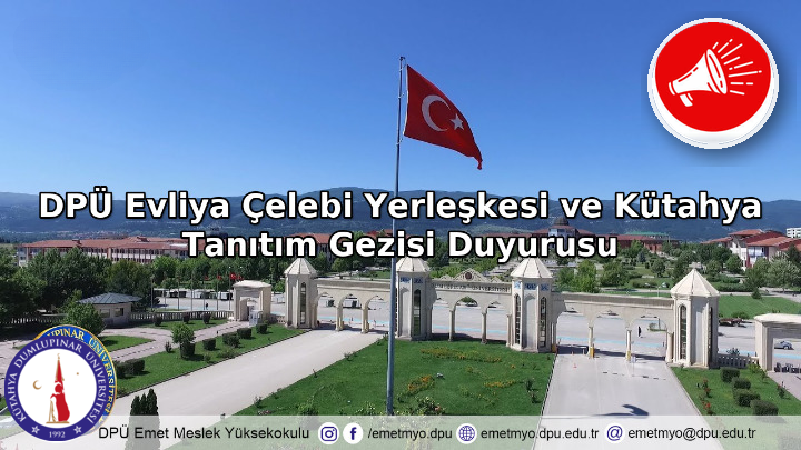Kütahya Dumlupınar Üniversitesi tarafından, Meslek Yüksekokulumuzda öğrenim gören öğrencilerin üniversiteyi ve Kütahya ilini daha yakından tanımaları amacıyla 10 Ekim 2025 Cuma günü bir tanıtım ve gezi programı düzenlenecektir.