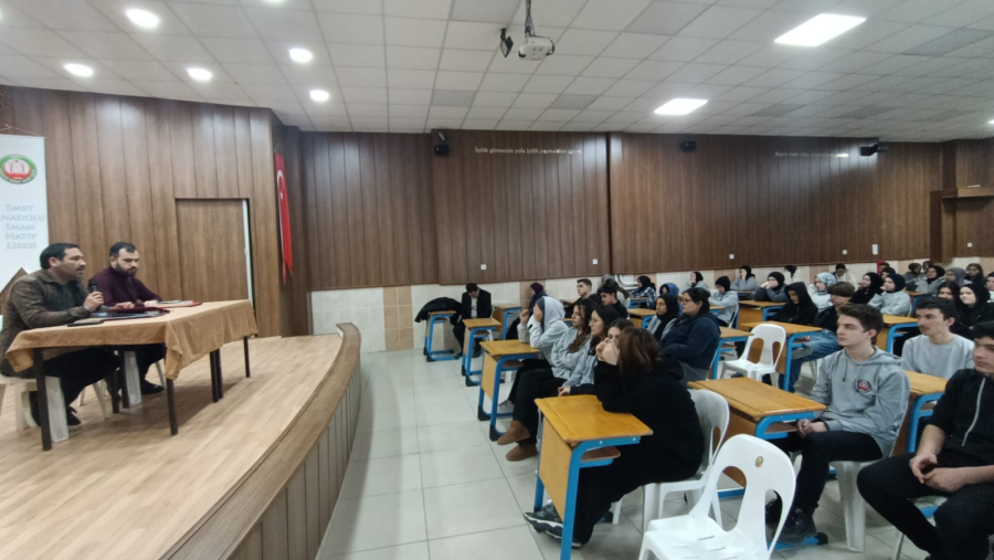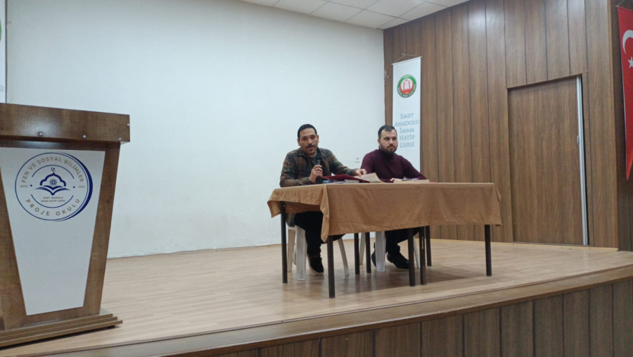 31 Aralık 2025 Çarşamba günü saat 11.30’da, Emet AİHL Fen ve Sosyal Bilimler Proje Okulu Konferans Salonu’nda düzenlenen etkinliğe konuşmacılar Dr. Öğr. Üyesi Rıdvan Sezgin ve Dr. Öğr. Üyesi Vedat Bakır’ın yanı sıra Emet AİHL Fen ve Sosyal Bilimler Proje Okulu öğrencileri katıldı.